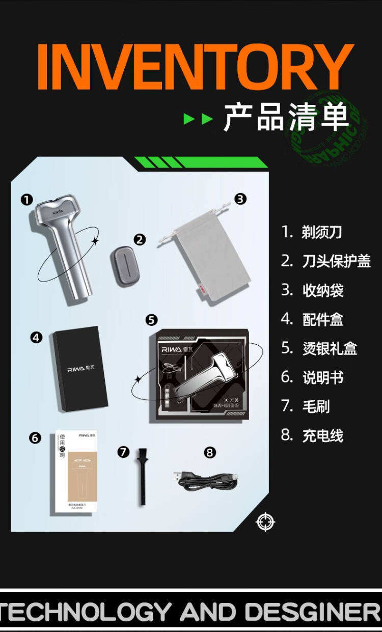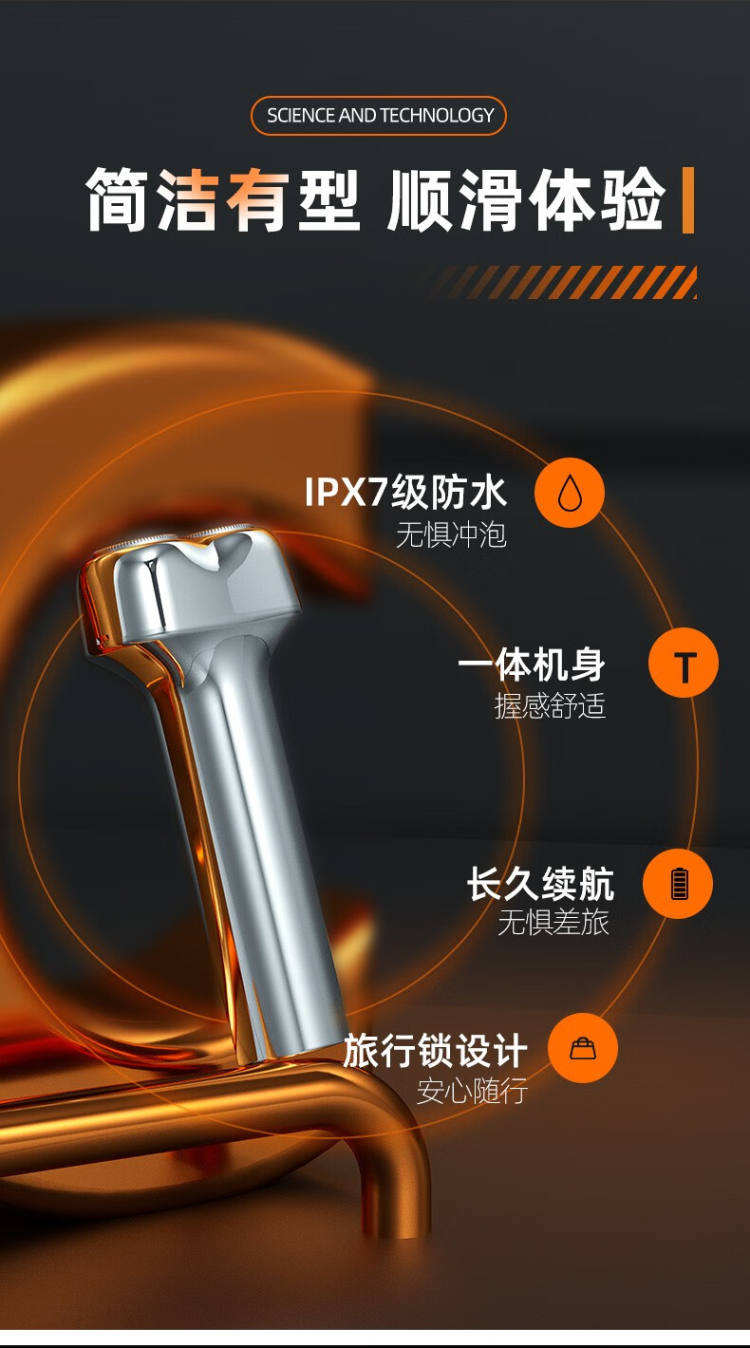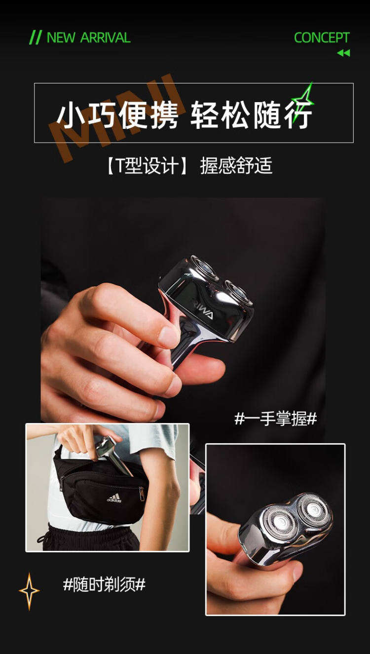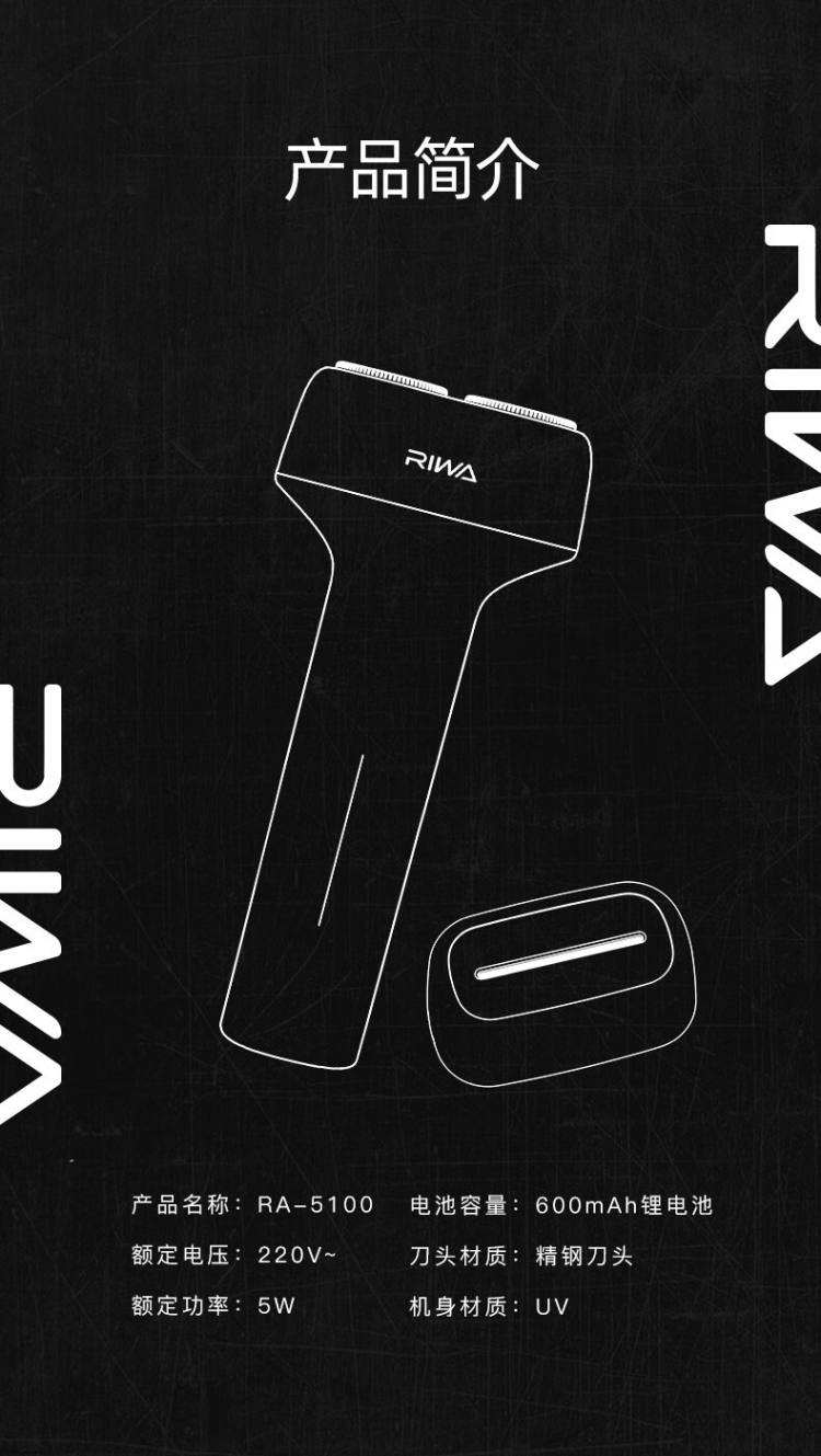 雷瓦 小锤子IPX7级全身水洗快充电动剃须刀 RA-5100